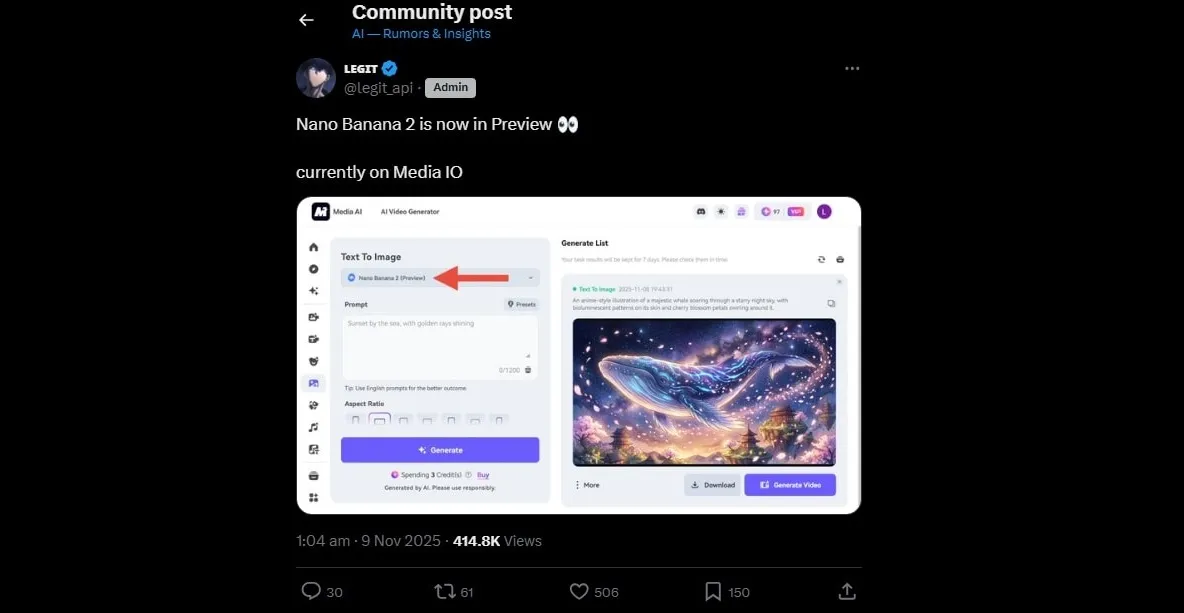 The real explosion of excitement began when an early Nano Banana Pro preview was unexpectedly leaked on Media.io. Almost instantly, social media went into overdrive; fans shared snaps, reactions poured in, and leaked visuals spread immensely. The momentum has only grown since then, making this innovation the next big phenomenon, as reviewed below.