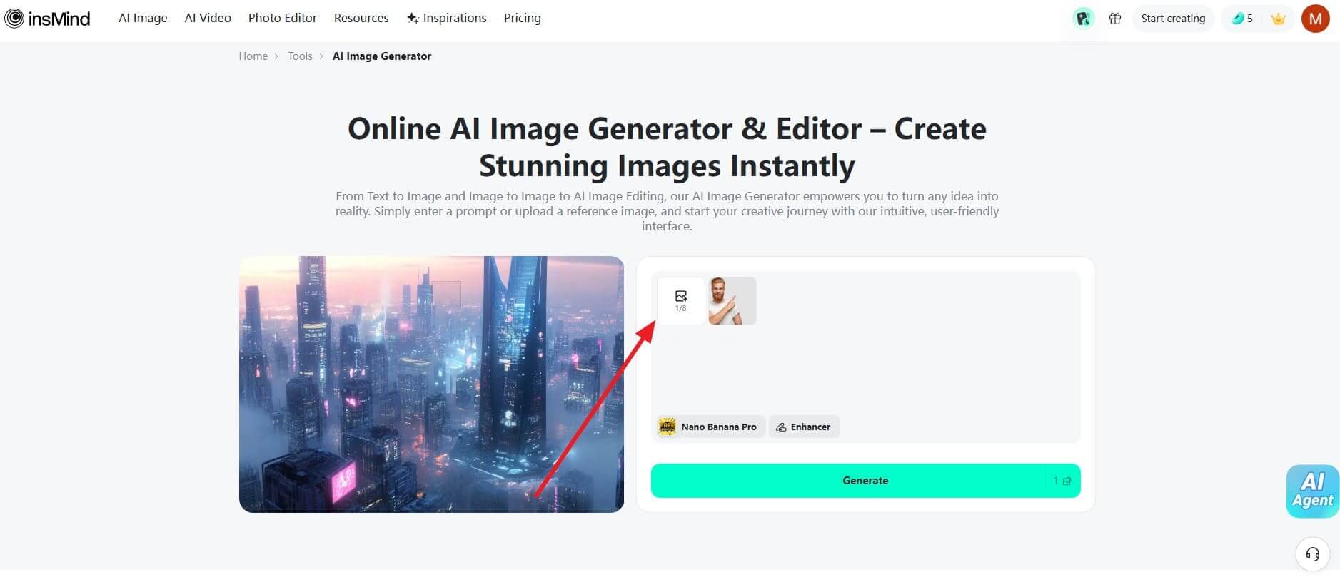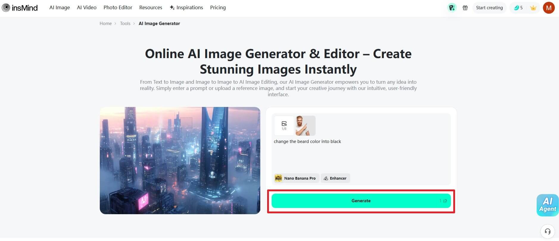 For beard changing color, insMind is the most popular tool for quick, high-quality results. It lets you upload a photo or use a reference image for precise editing. Besides, you can enter a text prompt to guide the AI and get accurate beard color changes. Its dedicated Nano Banana Pro model also delivers higher image quality and realistic beard changing color results. So, go through the given steps to use this AI-powered beard color changer: