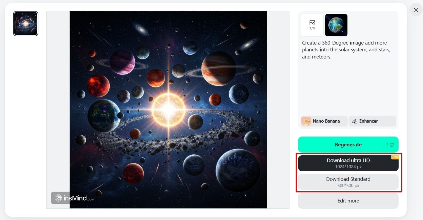Finally, as the image is generated, you can choose between "Download Ultra HD" or "Download Standard" to save the results accordingly. For more edits within your generated image, you can go for the "Edit more" button or choose "Regenerate" if you are unsatisfied with it.