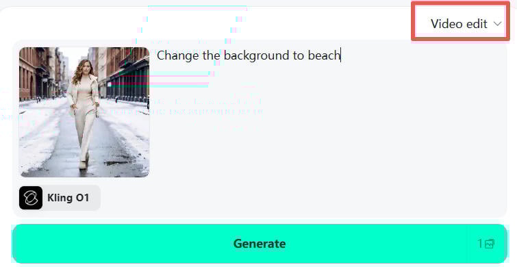 Click the generate button to create your first video. When it’s ready, use the editing tools to fix anything you want to change. You can swap characters, remove unwanted objects, change the camera angle or completely restyle the scene.