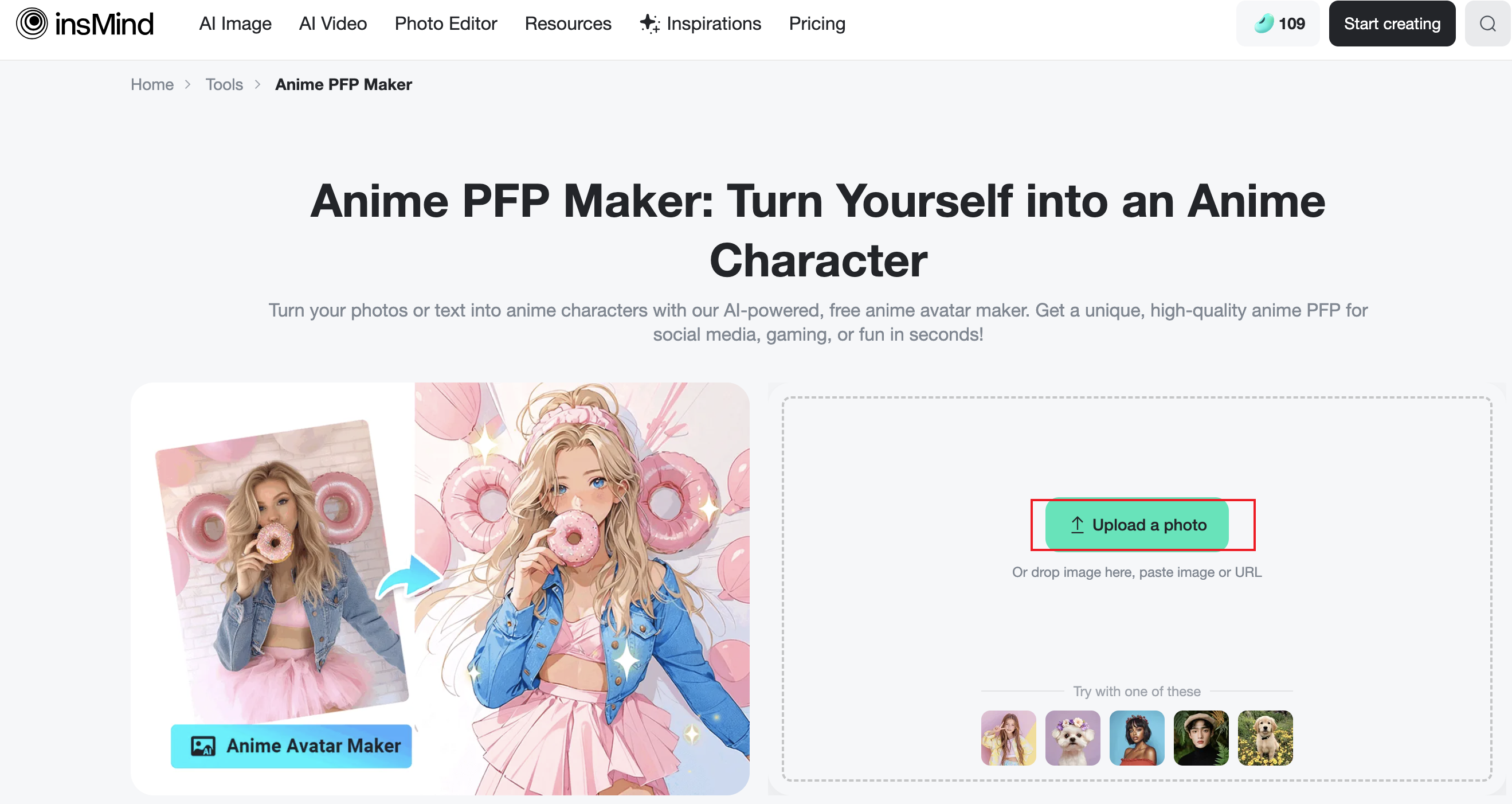 If you're in the mood for something a little different, try insMind's Anime Avatar Maker. This one uses AI to turn your selfies into anime-style avatars: