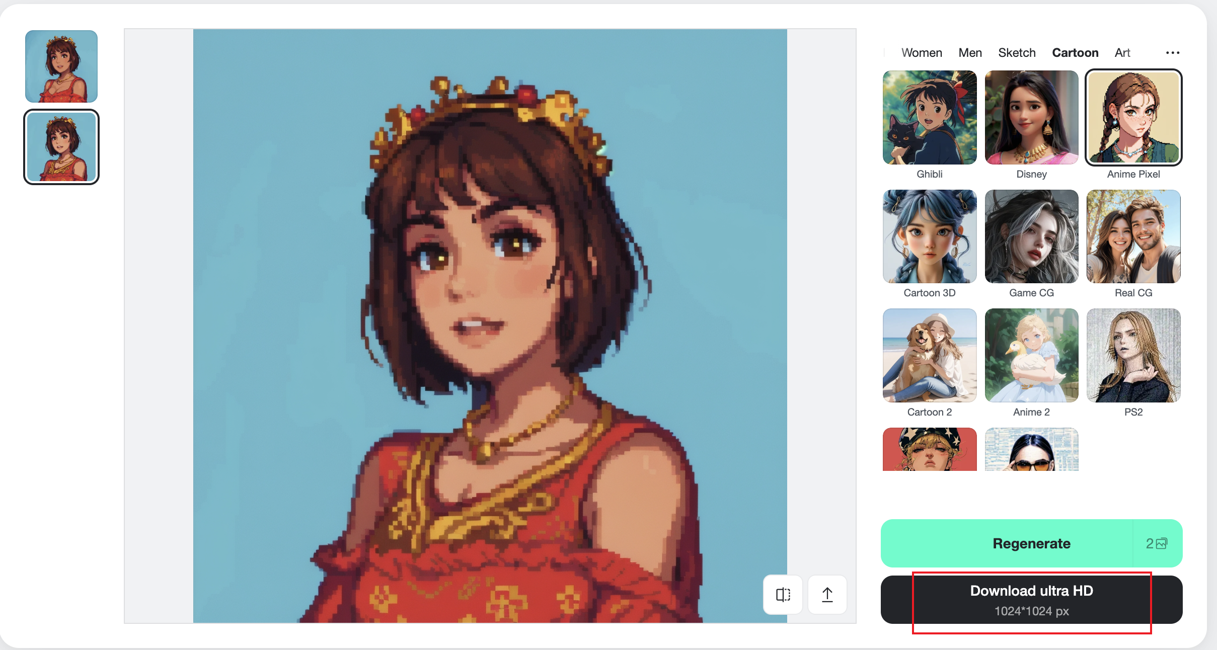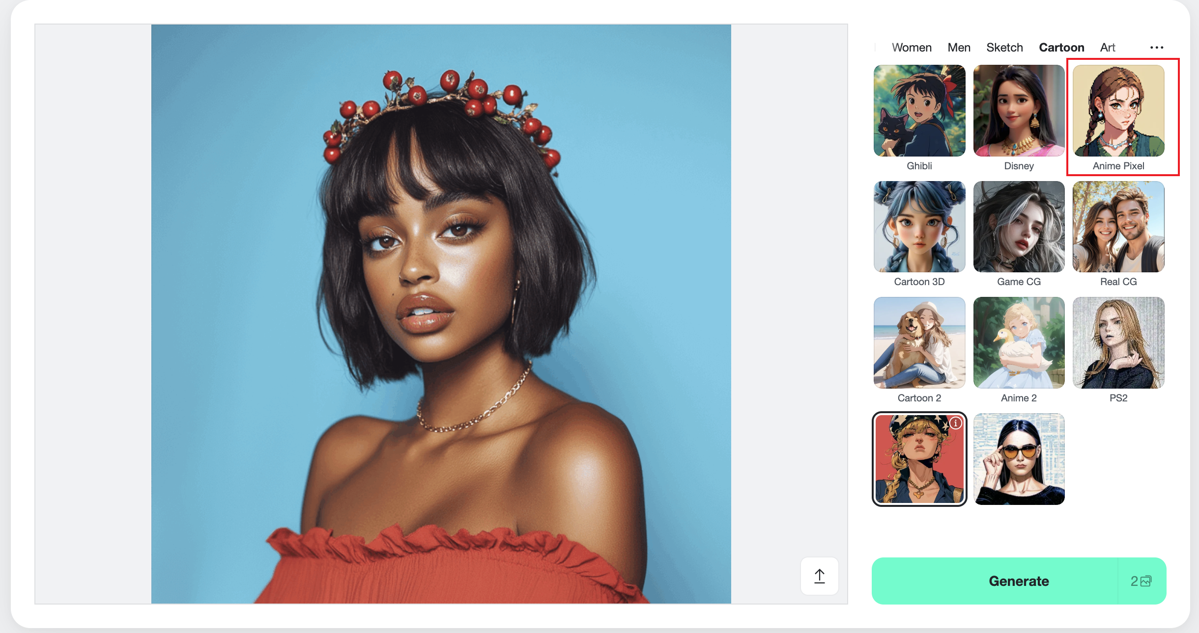 3. Hit "Generate" and let the AI transform your photo into a unique avatar.