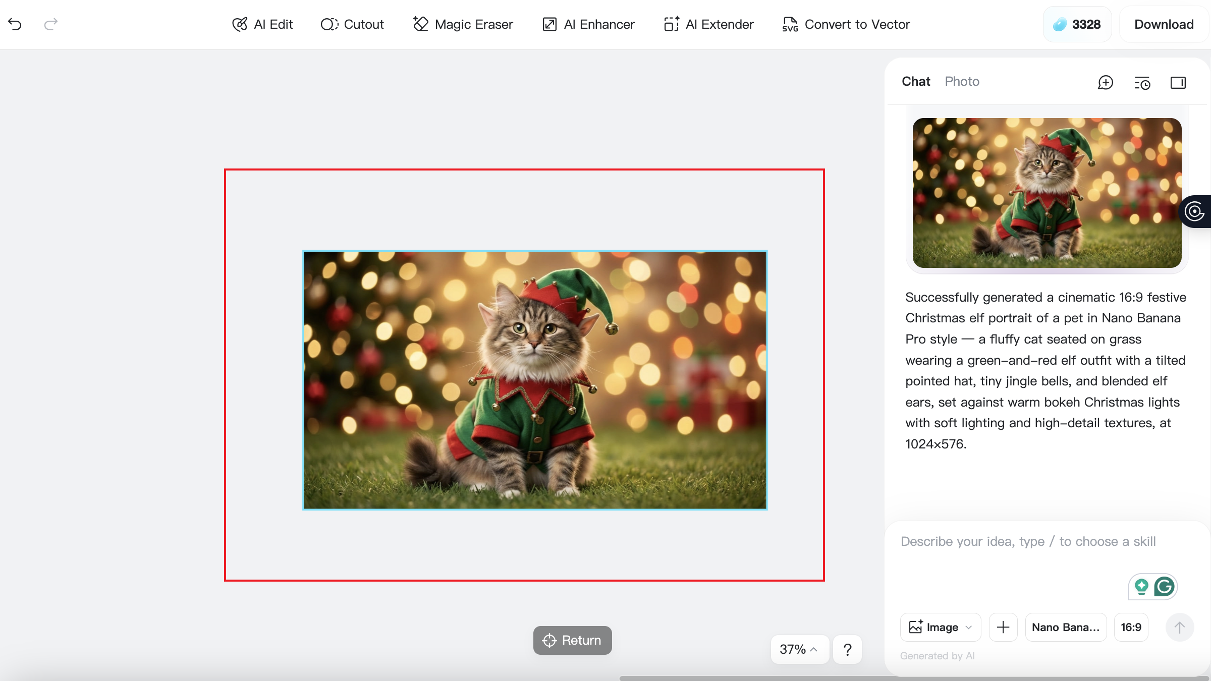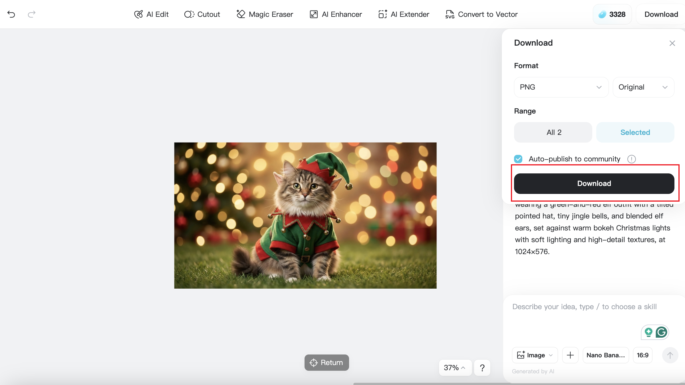 Review your finished image, download it in high resolution, and share it wherever you like. Use it for social media avatars, holiday posts, or festive Christmas cards.