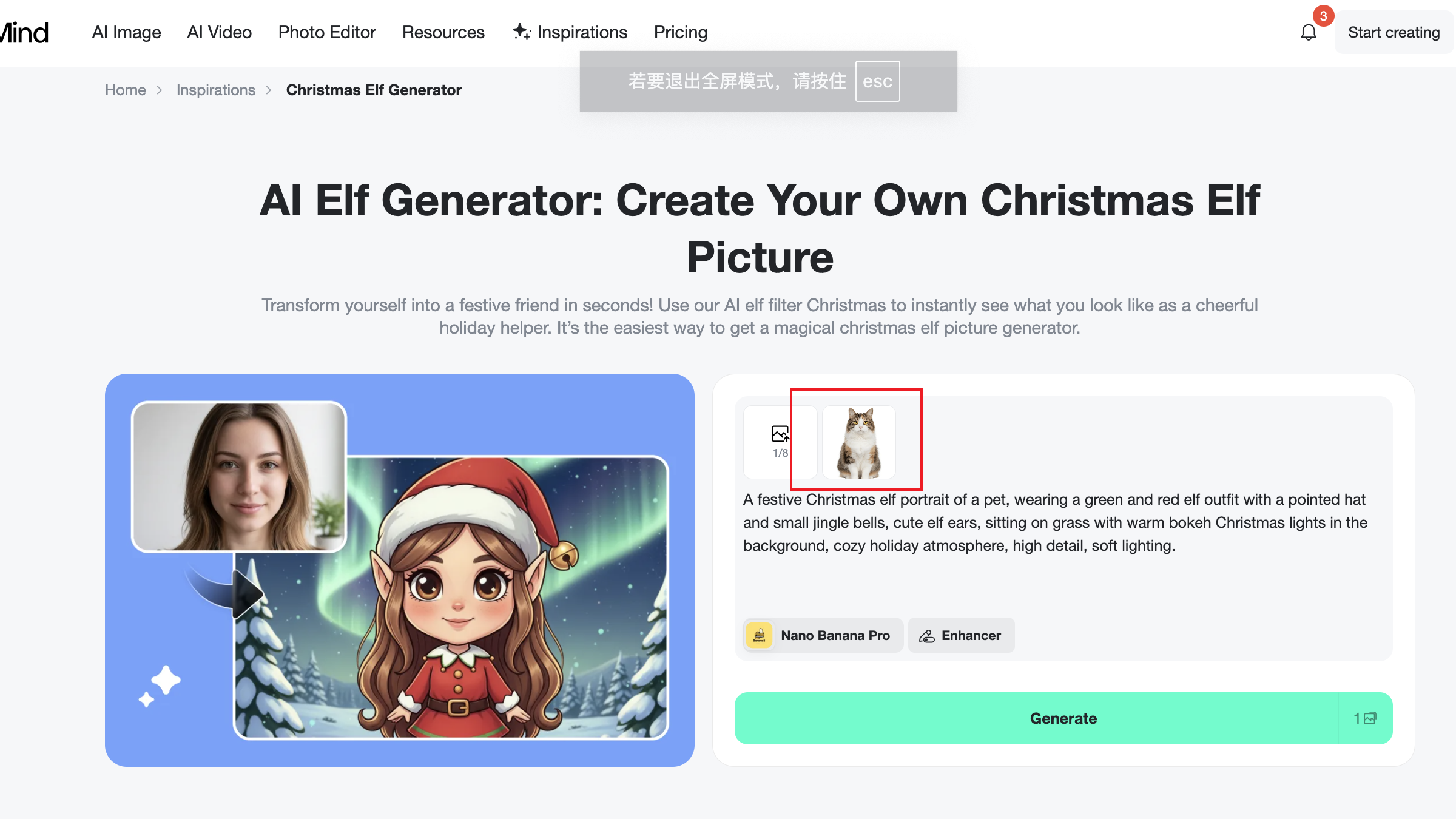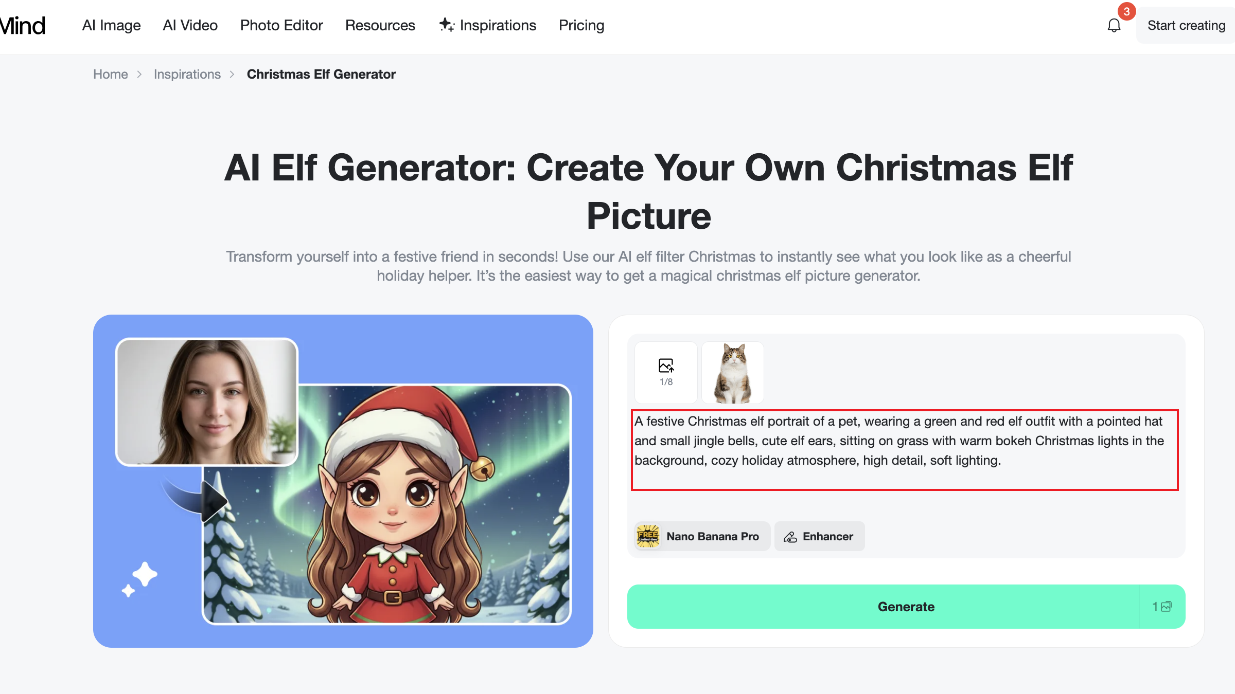 Click the generate button and let the AI work its magic. Within seconds, your photo will be transformed into a unique Christmas elf image.