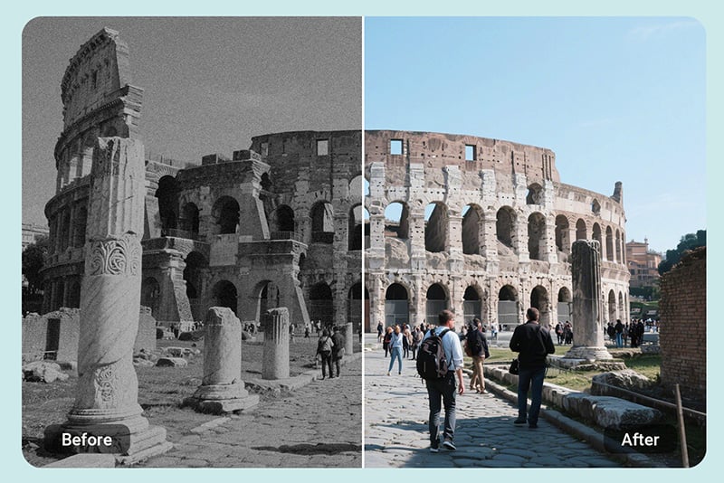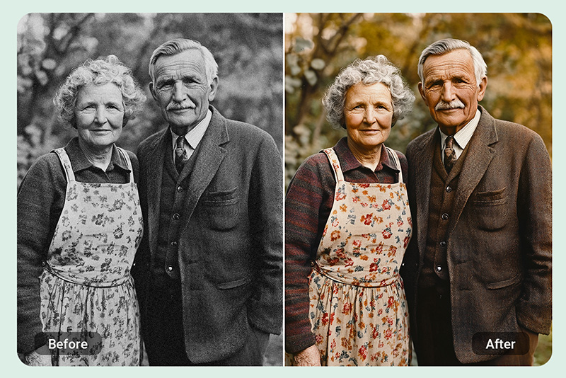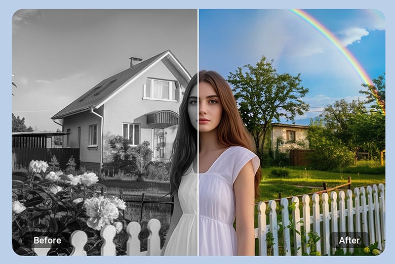 Upload your old photo and let our AI recolor it intelligently and automatically with precision. We also offer an advanced colorization option that lets you customize the result using a text prompt. Experience the magic of AI as it transforms your monochrome moments into full-color photographs.