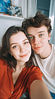 Please process each person exactly as they appear in the uploaded photos - maintaining their facial features, hairstyle, race, posture, clothing, and proportions. Create a vertical 4K (2160×3840) triptych, consisting of three equally wide horizontal panels, seamlessly stitched together, presenting all the original figures together. Using mainly 35mm/50mm standard fixed focal lengths, aperture f/2.8, shutter speed 1/180 second, flash on.balancing both the environment and the details of the people, with natural perspective Color: Soft diffused light on a cloudy day, no strong shadows, a typical film-like retro green tone, low saturation and cool base + warm skin tone, a serene and distant atmosphere Panel 1 - Back view Shot from slightly behind, showing the back and side outlines. The center of the panel: a man and a woman holding hands and walking forward, with relaxed and natural postures, both in back view + side view Background: Yellow-green long grass covering the edge of the cliff, grass leaves swaying gently in the wind, calm blue-green sea surface, soft ripples, steep cliff on the right, clear rock textures, distant coastline blurred Panel 2 - Close-up shot Shot size: Medium close-up, frontal view, focusing on the interaction of the upper body and face The two main characters' foreheads touch, their faces gently caress each other, an extremely intimate emotional interaction, full of tenderness and attachment. Background: Blurred coastline and sea surface, Panel 3 - Medium shot Level view with slight overhead, showing sitting and leaning positions,The two are quietly leaning against each other, the woman's head resting on the man's shoulder, facing the camera, with relaxed limbs, presenting a calm and comforting sense of companionship after a journey Scene: Yellow-green long grass-covered ground, clear grass leaf textures, open sea surface and cliff, distinct layers, a serene and healing atmosphere