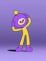 Generate a model toy of the cartoon character in the picture. Place the figurine on the computer desk, equipped with a circular transparent acrylic base, with a scale of 3:4