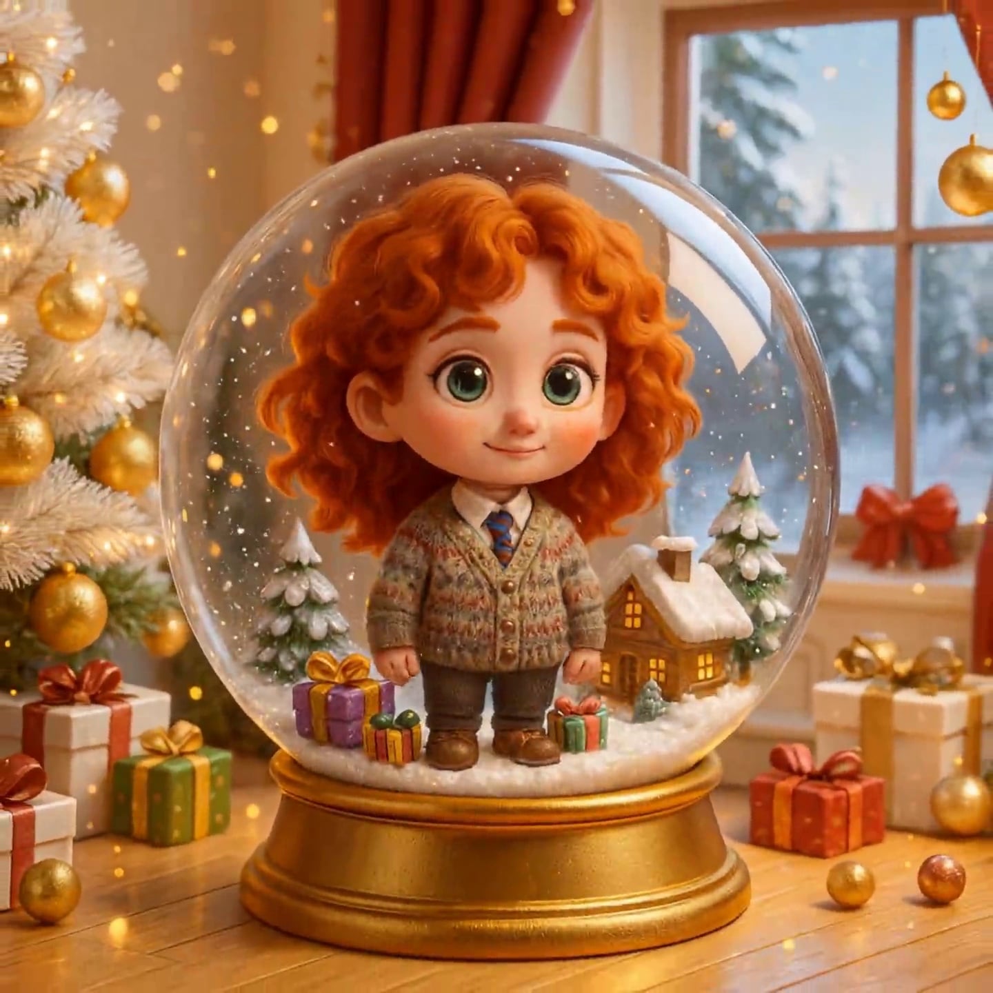 The camera slowly pulls back, maintaining the consistency of the characters. As the real person is running forward, they quickly transform into a cartoon image, with the process being dynamically blurred. The cartoon image in the frame comes to life, blinking, opening its mouth to smile, extending its hand to greet, with smooth movements and extremely lively expressions.