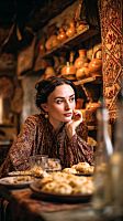 Maintain the consistency of the characters and the slow tracking shots. The protagonist holds a slender brush and colors the hair of the sculpture. The protagonist holds a paintbrush and dips it into the paint in front of them to paint on the face of the sculpture. The protagonist sets down the paintbrush and smiles at the sculpture. Then, he/she tidies up the hair and clothes of the sculpture.