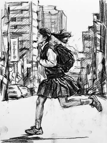 Optimize the line drawing, transform it into a Japanese anime style and color it to add a campus background