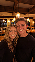 {"scene_description":"A wide-angle cinematic shot of a young couple dancing in a heavy snowstorm at night. The woman is positioned on the left of the frame, the man on the right, on a thick, textured blanket of white snow.","subjects":{"woman":{"action":"Twirling gracefully, holding the hem of her dress with one hand and the man's hand with the other.","attire":"Elegant off-the-shoulder white wedding gown with a full, flowing silk skirt and long sheer sleeves.","appearance":"Use uploaded female character, lock face + hair color, do not lock hairstyle/makeup/expression, smiling joyfully."},"man":{"action":"Leading the dance, holding the woman's hand while stepping forward slightly.","attire":"Tailored classic black suit with a white dress shirt.","appearance":"Use uploaded male character, lock face + hair color, do not lock hairstyle/makeup/expression."}},"environment":{"ground":"Deep, powdery snow with visible footprints and soft undulations.","atmosphere":"A heavy blizzard with thick, elongated white snowflakes falling diagonally across the frame.","background":"A dark, void-like night sky that creates a sharp contrast with the brightly lit foreground."},"lighting_and_color":{"lighting_style":"High-key spotlighting from above, creating a glow on the subjects and the snow while leaving the background in deep shadow.","color_palette":"Monochromatic contrast of stark whites, deep blacks, and neutral grays.","mood":"Romantic, ethereal, and dramatic."},"technical_specs":{"aspect_ratio":"2:3 (vertical)","camera_angle":"Eye-level, medium-wide shot.","focal_details":"Soft focus on the falling snow to create a sense of motion blur, while the subjects remain the primary focal point."}}