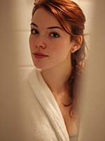 Use the same person, outfit, background, lighting, facial features and pose as in the reference image. Replace only the makeup and headpiece with an artistic Medusa-inspired look in high-fashion editorial style. Face makeup: tiny, artistic, green serpent-scale patterns only on the outer areas of the face, gradually fading toward the center of the face. The scales are very small, refined, luminous, and sparkling, not scary or realistic, painted high-fashion makeup. forehead, chin: subtle shimmering green-gold highlights creating a soft metallic glow. Eye makeup: bold metallic green and gold tones, tiny pearls dotted along upper eyelid as eyeliner, ultra-fine gold leaf fragments under eyes for soft shimmering “golden tears.” Eyes: yellow irises with large vertical slit pupils, elongated and pronounced like a serpent’s eyes, mysterious, elegant, and artistic. Lips: atrovirens outline along outer contour, gradually transitioning to deep red at the center, glossy and luxurious. Headpiece: extravagant, sculptural golden serpent-inspired crown, ornate and luxurious, integrated naturally with the hairstyle.