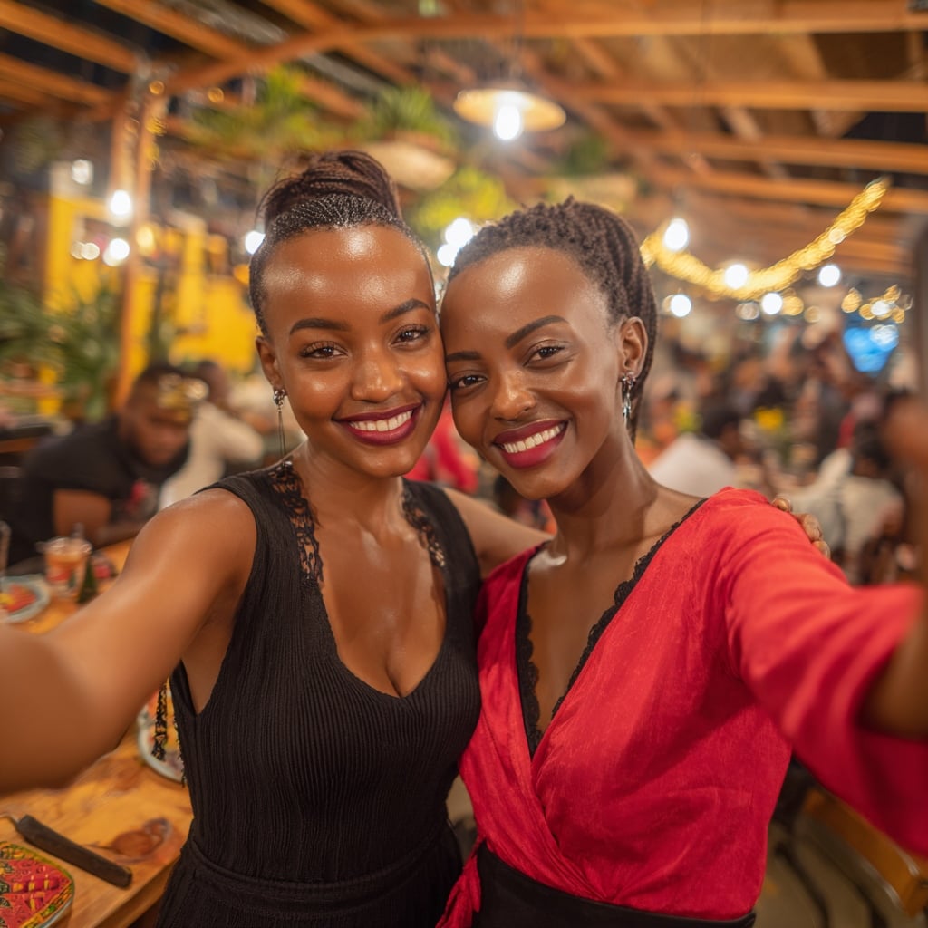 Use the person in the image, keep the background, lighting, facial features, shape of the face, clothing, pose, and actions unchanged. Apply Tim Burton style Red Queen Halloween makeup: Remove the person's original all hair completely and replace it with a exaggerated red high-up hairstyle, white face makeup covering original eyebrows completely, thin black eyebrows drawn on top, heart-shaped bright red lips, dramatic blue eye shadow, gothic red crown with gold details, cinematic gothic style, Halloween cosplay makeup, exaggerated, fantasy