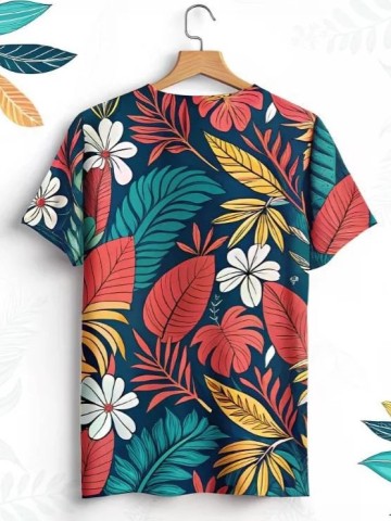 A T-shirt with a colorful print, clothing design