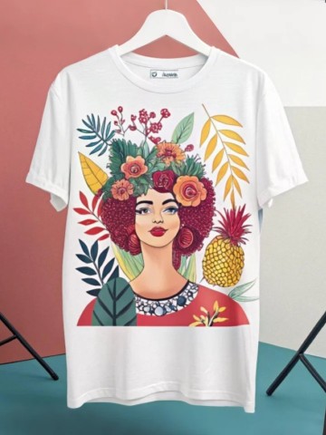 A white T-shirt with a portrait printed in the middle, clothing design