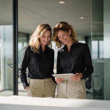 Change the tops of only the main subject(s) from the user-uploaded image to a black, crisp cotton-poplin business long-sleeved shirt featuring a pointed collar. The main subject(s) refers to the primary person or group of people in the foreground as the visual focus of the image. Ensure the shirt fully covers the torso and upper arms, leaving no trace of the original top. Do NOT change, remove, or alter any clothing of background people — they must remain exactly as in the original image. All people remain in the exact original position with no body movement, identical posture, same face, same lighting. Background characters must stay completely unchanged in clothing, appearance, and position. Enhance image quality. Make the picture clearer and more textured while preserving realism and natural integration.