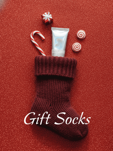 The product remains unchanged: it is kept as it is, including its shape, texture and features, without any alterations. The product is placed in the center of the picture, above the Christmas stocking, partially covered by the stocking itself, with a portion of the picture remaining blank above. The Christmas stocking is placed at the lower part of the picture, serving as the core container for the items, made of wine-red knitted material, wool material, with a textured appearance, full of form, presenting a typical Christmas stocking style, and being the visual center carrier of the picture. From an overhead perspective, all elements are presented from a vertical angle relative to the picture. The background is entirely made of red glitter material, covered with fine golden glitter particles, visually presenting a strong festive atmosphere and luxury feeling. Style: Ultra-realistic high-end product photography - cool tone bright light, clear highlights, with a similar cinematic depth effect. Christmas decorations are placed above the Christmas stocking around the product: a candy cane with red and white stripes, curved shape, a mini gift box with a red base and white ribbon bow, small and exquisite; three candy pieces, different shapes, red and white stripes, embellishing the picture. Atmosphere: Luxurious, alluring high-end atmosphere The overall lighting is soft, allowing the red glitter background to present a uniform luster, and the texture of the glitter particles is delicately depicted. In the middle of the picture, slightly lower, there is a huge white title "Gift Socks", in hand-written font, with a concise layout.