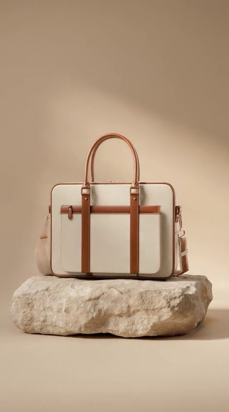 { "duration": "8 seconds", "camera": "Static medium shot at a slightly low angle, focusing on the handbag (using the user-uploaded handbag). The camera performs a slow, subtle orbit around the handbag, approximately 10 degrees, keeping it centered in the frame.", "lighting": "Soft, warm light coming from the right, creating subtle shadows and highlighting textures. The light slowly moves across the handbag to enhance dimensionality.", "subject": "A handbag placed on a light-colored rock.", "setting": "Studio environment, colors adjusted to match the user-uploaded handbag." }