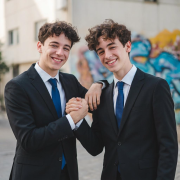 Change the clothes of only the main subject(s) from the user-uploaded image to linen navy blue casual two-piece suits paired with white round-neck T-shirts. The main subject(s) refers to the primary person or group of people in the foreground as the visual focus of the image. Do NOT change, remove, or alter any clothing of background people — they must remain exactly as in the original image. All people remain in the exact original position with no body movement, identical posture, same face, same lighting. Background characters must stay completely unchanged in clothing, appearance, and position. Enhance image quality. Make the picture clearer and more textured while preserving realism and natural integration.
