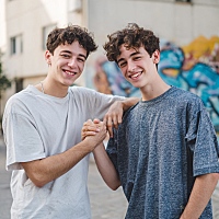 Use the subject from the uploaded photo — including the subject’s actual gender — and apply an artistic red–blue double-exposure effect using two poses of the same person. Keep the base layer as the original pose and background exactly as in the uploaded photo. Generate a second pose where their head angle, facial direction, or expression is slightly different, as if captured a moment earlier or later. Color the second pose in red, the base pose in cyan, and offset the layers to create a clean ghosting effect. Preserve skin texture, tattoos, contrast, and maintain the original background.