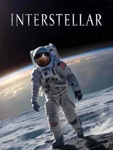 A movie poster titled "Interstellar" features an astronaut as the subject and the Earth in the background