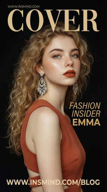 { "layout_specifications": { "dimensions": "Vertical (9:16 aspect ratio)", "composition": "Close-up portrait, three-quarter view, subject off-center to the left", "color_palette": ["Matte Black", "Dusty Rose/Terracotta", "Champagne Gold", "Ivory Skin Tones"] }, "subject_details": { "model": "Use the person from the user-uploaded image as the main subject in the foreground, lock face + lock hair color + lock hairstyle, do not lock makeup or expression", "expression": "Serene, direct gaze towards the camera", "hair": "Keep exactly the same hair color and hairstyle as the user-uploaded image", "makeup": "Dewy skin finish, defined eyebrows, and bold matte red/terracotta lipstick (modifiable, not locked)", "attire": "Sleeveless terracotta or coral-colored dress with side cut-out detailing", "accessories": "Large, ornate silver/white gold chandelier earrings with a leaf or petal motif" }, "typography_and_text": { "main_title": { "text": "COVER",