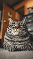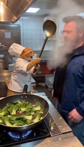A chubby cat strides confidently to the Olympic diving board, tail flicking. It crouches at the edge in perfect posture, leaps powerfully, and pulls a tight 720° forward somersault mid-air—paws tucked, ears back, tail balanced. The clear pool glows with overhead lights below. Finishing the spin, it straightens, dives in with barely a splash. The crowd cheers loudly; slow motion captures every sleek athletic move, with water sounds and audience roars accompanying its entry.