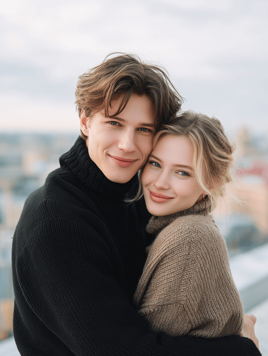 {"scene_description":"A wide-angle cinematic shot of a young couple dancing in a heavy snowstorm at night. The woman is positioned on the left of the frame, the man on the right, on a thick, textured blanket of white snow.","subjects":{"woman":{"action":"Twirling gracefully, holding the hem of her dress with one hand and the man's hand with the other.","attire":"Elegant off-the-shoulder white wedding gown with a full, flowing silk skirt and long sheer sleeves.","appearance":"Use uploaded female character, lock face + hair color, do not lock hairstyle/makeup/expression, smiling joyfully."},"man":{"action":"Leading the dance, holding the woman's hand while stepping forward slightly.","attire":"Tailored classic black suit with a white dress shirt.","appearance":"Use uploaded male character, lock face + hair color, do not lock hairstyle/makeup/expression."}},"environment":{"ground":"Deep, powdery snow with visible footprints and soft undulations.","atmosphere":"A heavy blizzard with thick, elongated white snowflakes falling diagonally across the frame.","background":"A dark, void-like night sky that creates a sharp contrast with the brightly lit foreground."},"lighting_and_color":{"lighting_style":"High-key spotlighting from above, creating a glow on the subjects and the snow while leaving the background in deep shadow.","color_palette":"Monochromatic contrast of stark whites, deep blacks, and neutral grays.","mood":"Romantic, ethereal, and dramatic."},"technical_specs":{"aspect_ratio":"2:3 (vertical)","camera_angle":"Eye-level, medium-wide shot.","focal_details":"Soft focus on the falling snow to create a sense of motion blur, while the subjects remain the primary focal point."}}