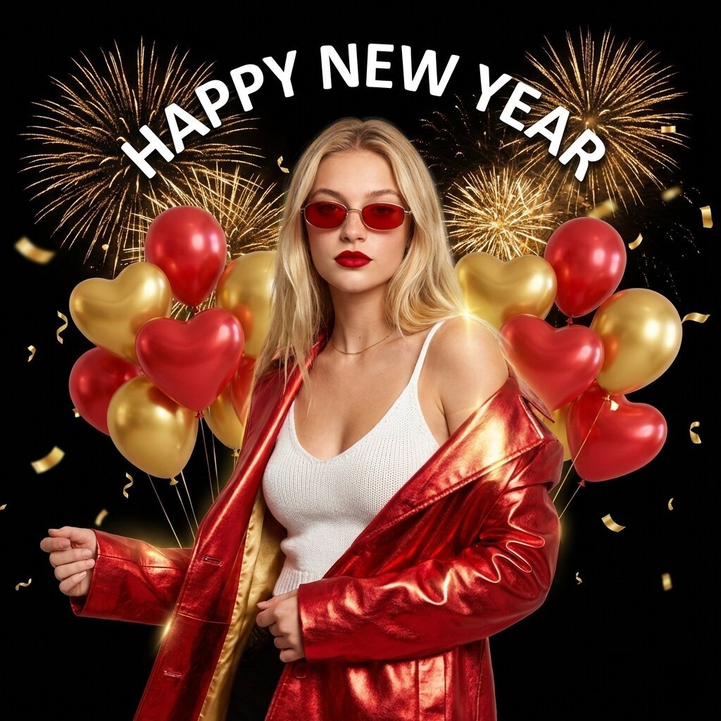 At the top, the white text "HAPPY NEW YEAR" curves above the figure.