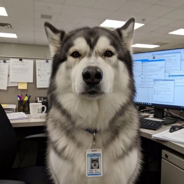 Using the reference image of the uploaded pet, create a realistic anthropomorphic version of the pet as a professional office worker. The pet is sitting at an office desk, wearing a smart business suit with a tie, typing on a laptop, papers and coffee cup on the desk. The pet's facial features and fur patterns are faithfully preserved. Modern office environment, natural soft lighting, ultra-realistic details, high-resolution, professional and focused atmosphere. Avoid distortion, keep proportions natural, do not alter pet identity.