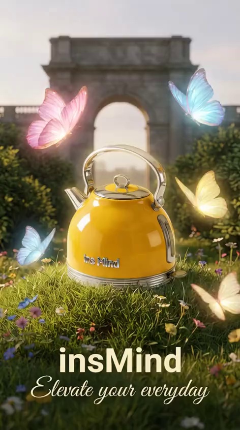 In the picture, the butterfly is slowly and powerfully flapping its wings and flying around the center of the teapot (in slow motion). The teapot is emitting yellow steam, maintaining the consistency of the main subject. The text in the foreground remains still. 8K resolution, smooth picture quality, the camera slowly pulls away.