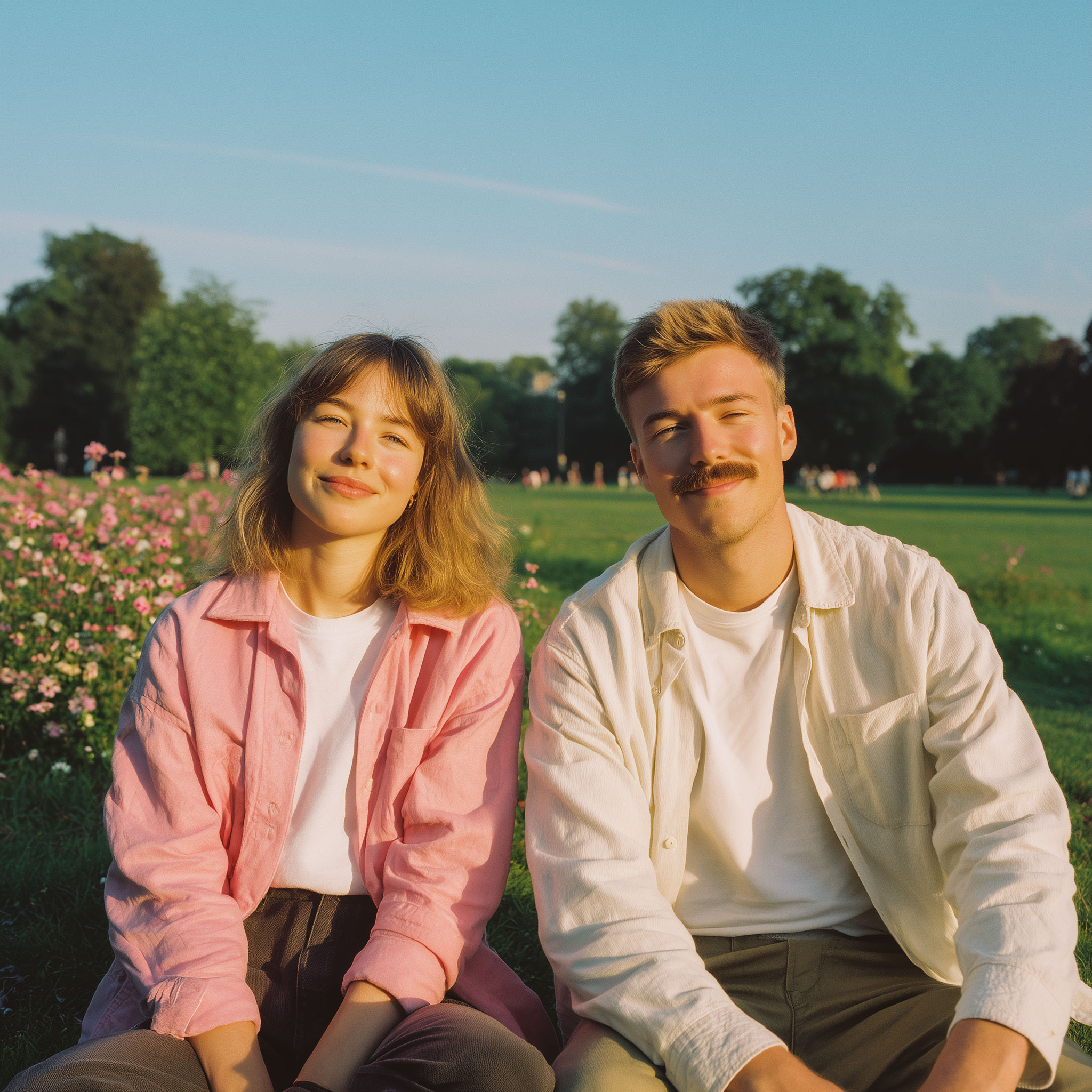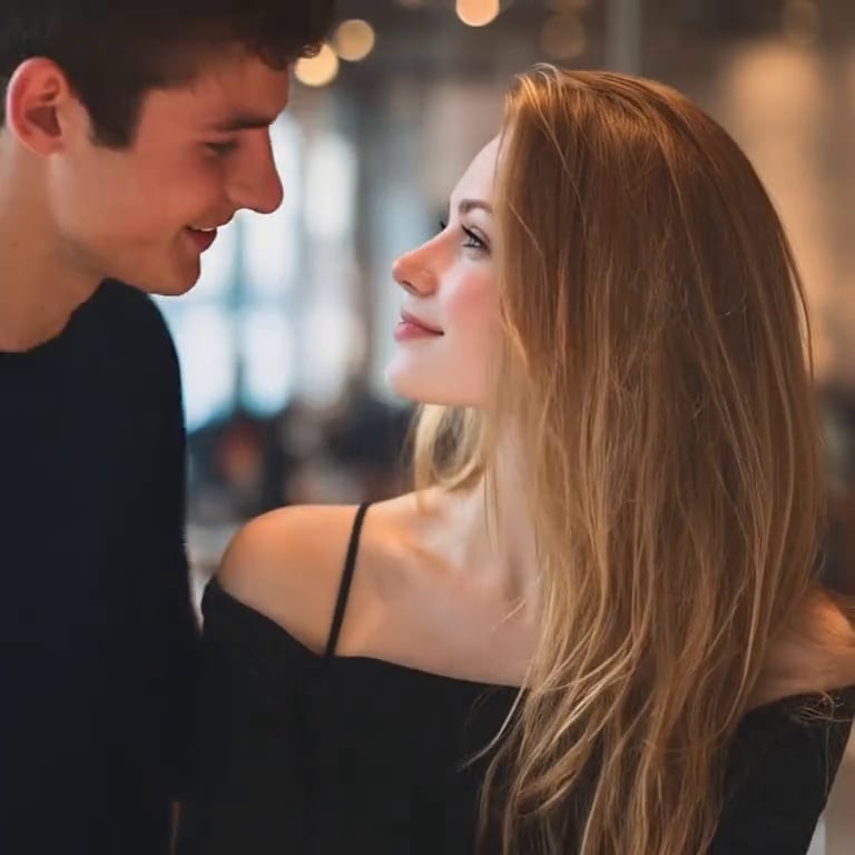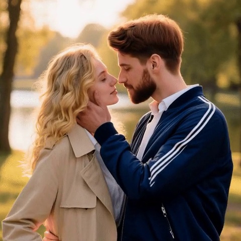0.0-1.0 second still original image; Within 1.0 to 2.0 seconds, a young member of the opposite sex naturally enters the frame from the left side and steps in front. For 2.0 to 4.0 seconds, the two people gently touch each other's foreheads and then kiss tenderly (only touching the lips lightly). Keep the kiss frozen for 4.0 to 5.0 seconds. Shapes, light and shadow, and expressions are smoothly aligned frame by frame, without any flash white or jump cuts. The background is clean and free of text.