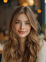The expression changes naturally and smoothly: first calm and neutral, then gradually turning into a bright, joyful smile, and finally a happy laugh.