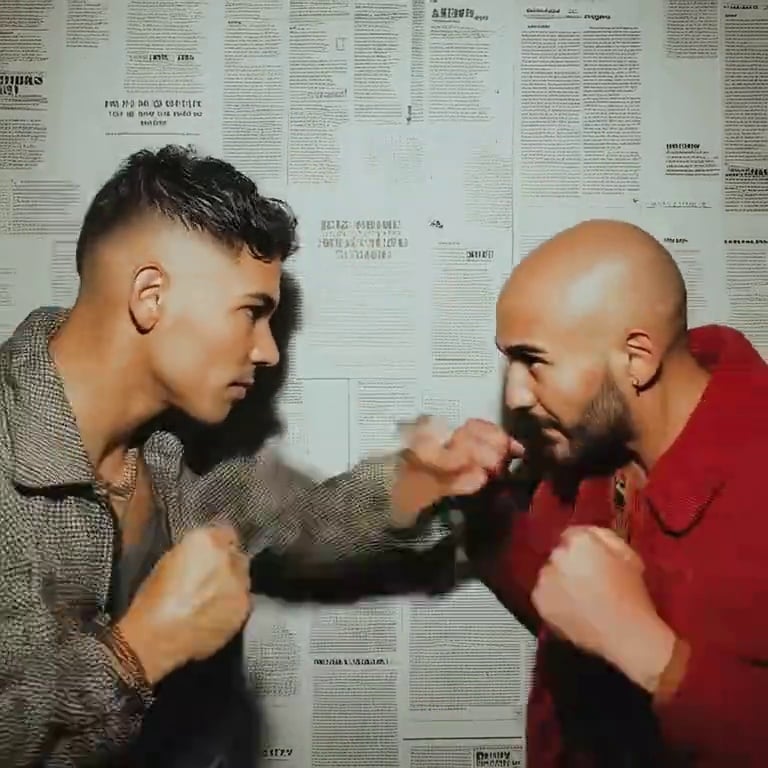 The protagonist remained still. On the left side of the screen, a large adult male's fist (with the back of the hand facing outward) rapidly extended from outside the frame. The fist forcefully hit the protagonist's side face. The moment the fist made contact with the face, it entered slow motion. In the slow-motion sequence, it was clearly visible that when the fist touched the left face, the protagonist's facial skin and muscles underwent significant deformation (the deformation was exaggerated). The entire deformation was presented in slow motion.
