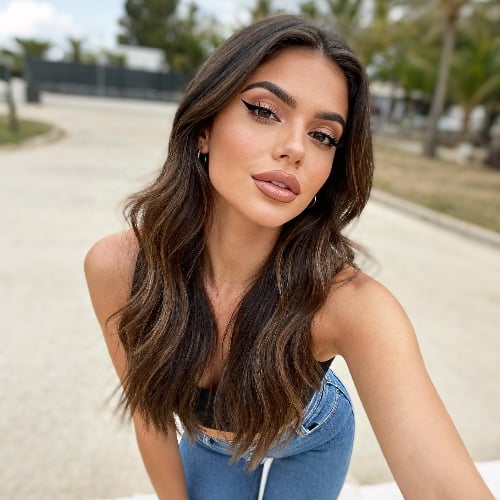 They slightly raise their wrist to show a gold Rolex Day-Date, but their gaze looks directly into the camera with a cool and commanding presence.
