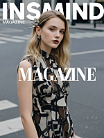 Emphasize the contrast between the elegant fashion cover and the brutally torn rupture with a massive, forward-thrusting lipstick breaking through it.