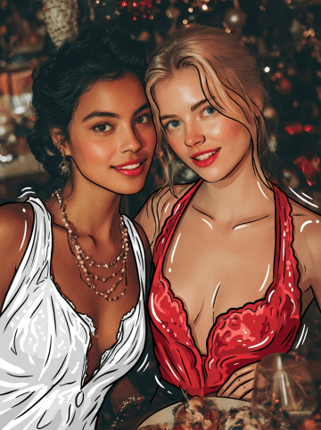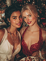 Left 2/3: full-body in luxurious party scene, natural pose, realistic lighting.
