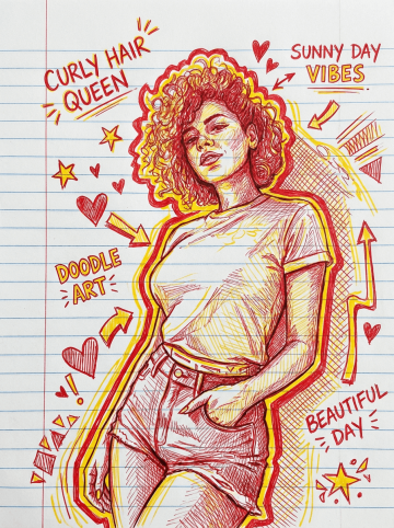 Use the subject from the user-uploaded image. Generate a hand-drawn portrait illustration in red and yellow pen on notebook paper, inspired by doodle art and comic annotations. Keep full likeness of the subject, express spontaneous gestures, bold outline glow, handwritten around, realistic pen stroke texture, 4K resolution.