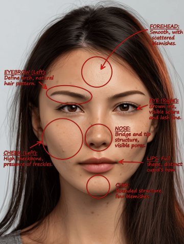 Create a clean, scientific-style diagram overlay on the uploaded portrait.