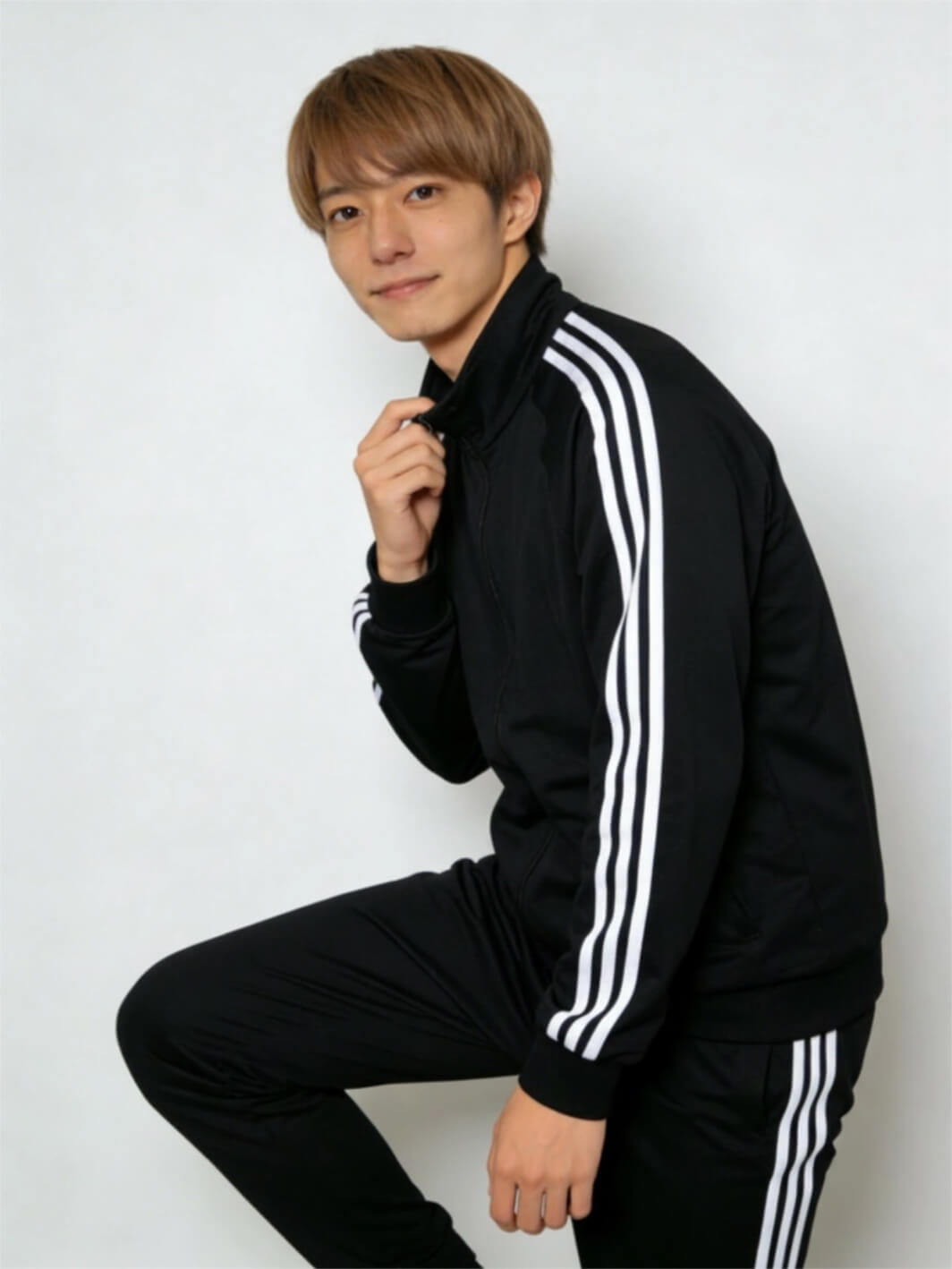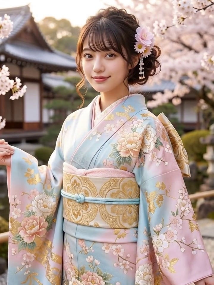 The camera pulls back from a close-up to a full-body shot. The protagonist completes the process of wearing the kimono with natural and smooth movements: First, they stretch their arms and perform a 180-degree fluid turn (with their back facing the camera momentarily), during which they simultaneously change the kimono. Then, they gracefully turn back to the front. The entire sequence of movements is smooth and continuous, presenting a natural and flowing dynamic beauty.
