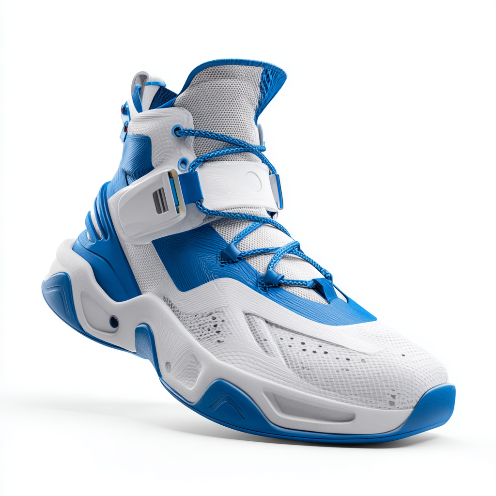 "subject": "The user-uploaded product, one upright and the other leaning against it, with branding details visible on the sole.",