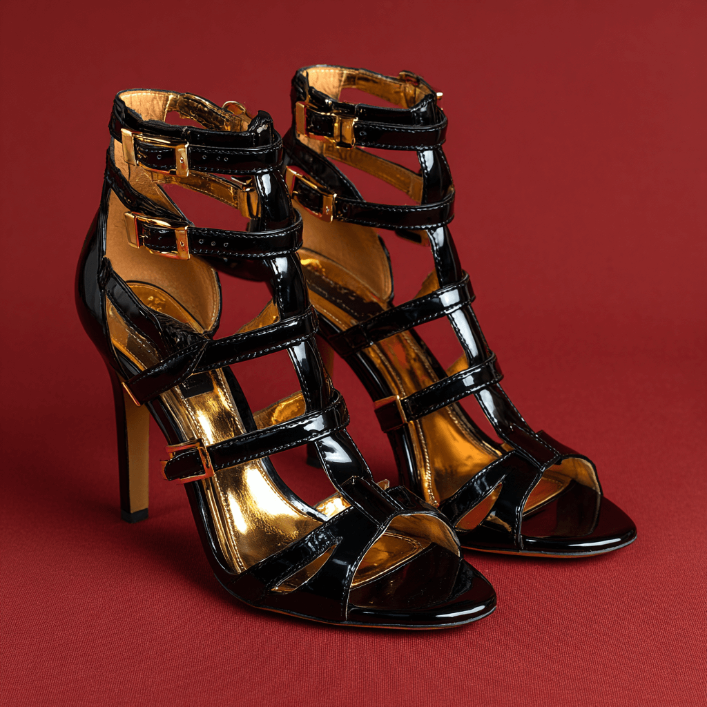 "lighting": "Studio lighting with soft, even illumination, highlighting the glitter shoes against a dark background.",