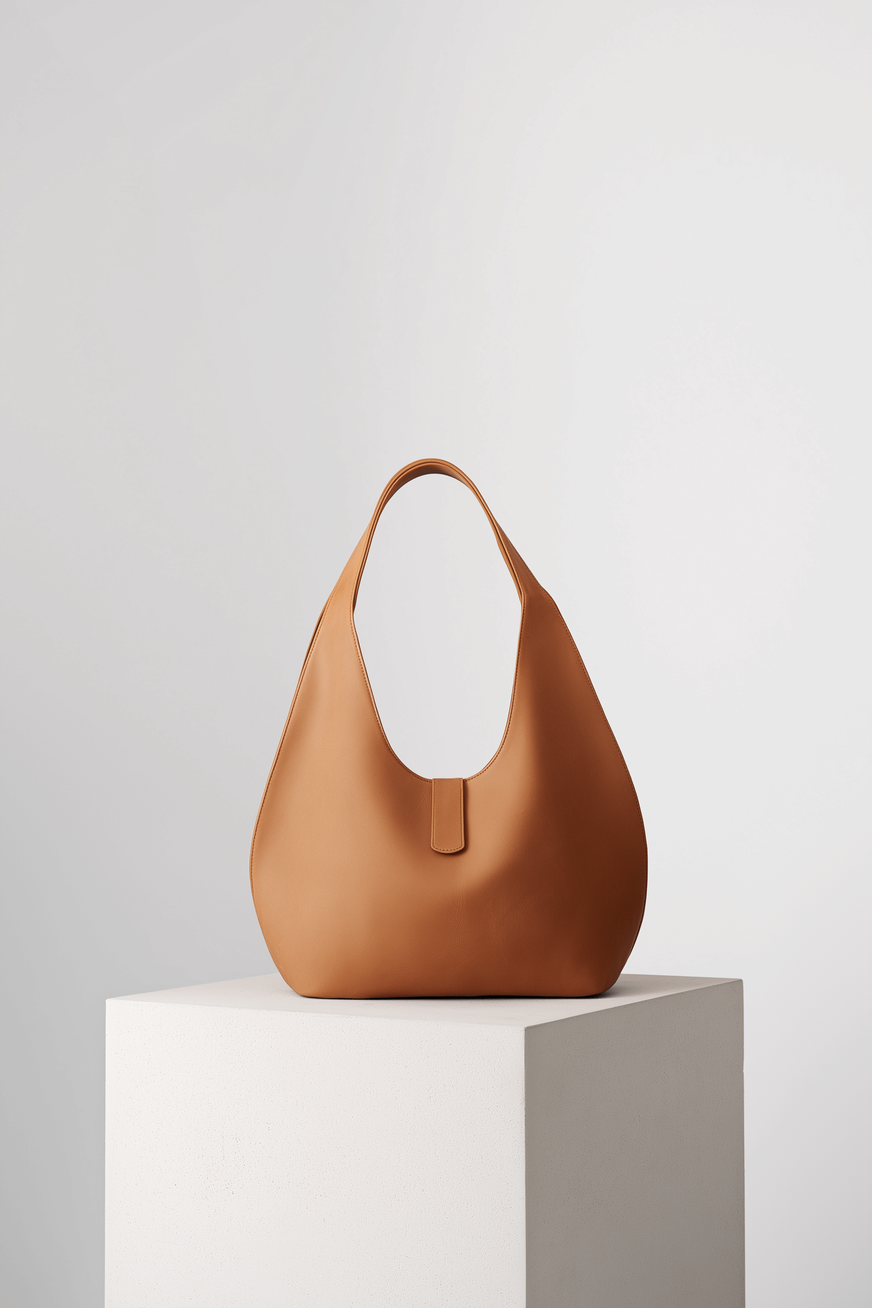 – She gently lifts the handbag in her hand, letting sunlight highlight the leather texture