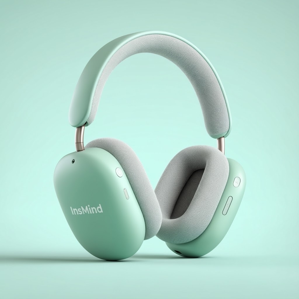 Shot 1: Close-up of the model's side face, the camera moves from right to left; the model wears headphones with their heads slightly tilted to the right, the line of sight follows the light spot (relaxed eyes, conveying a sense of immersion), the details of the ear cushions of the headphones are clearly visible.