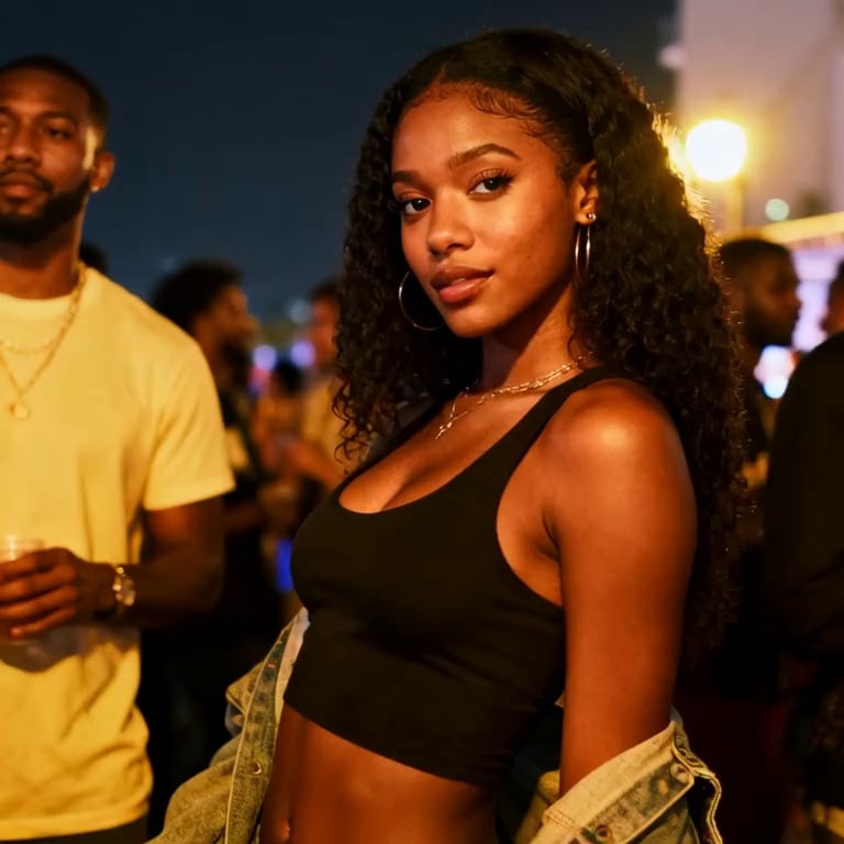 Upon hearing the dynamic music, the character immediately turned around nimbly with her back to the camera, her feet apart at shoulder width, her body slightly leaning forward, her hands placed on her knees, and her hips began to shake rapidly and powerfully. The movements were large in range and had a strong sense of rhythm. Each shake of her hips was precisely in tune with the music's beat, demonstrating her precise control over the dance and her body's coordination. Her long hair fluttered with the tremor of her hips, revealing her gracefully curved back. Her face always maintained a confident and contented smile, as if she were completely immersed in the world of dance. The camera initially captured the woman's entire body from the front. At the moment she turned around, the camera quickly switched to the back view, focusing on the shaking movement of her buttocks. A close-up shot captured the rapid shaking of her buttocks and the tightness of her muscles