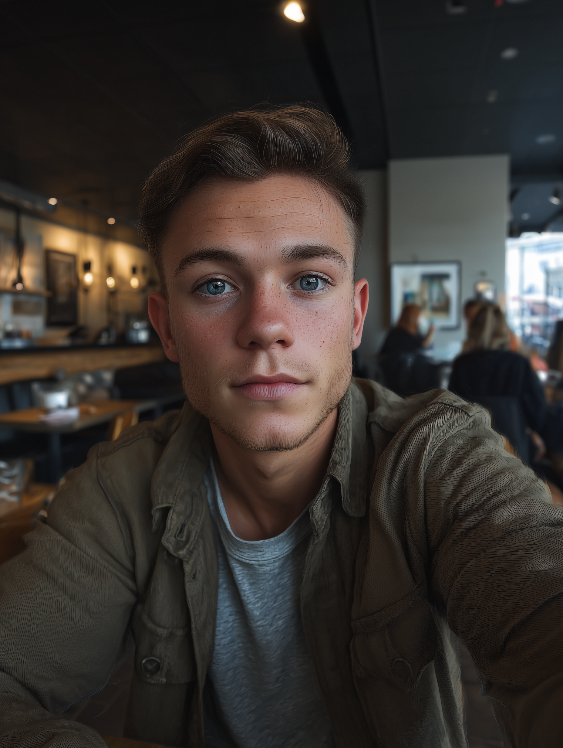 Keep the person’s real face completely natural and unchanged, preserving their true identity and expression style without over-editing.