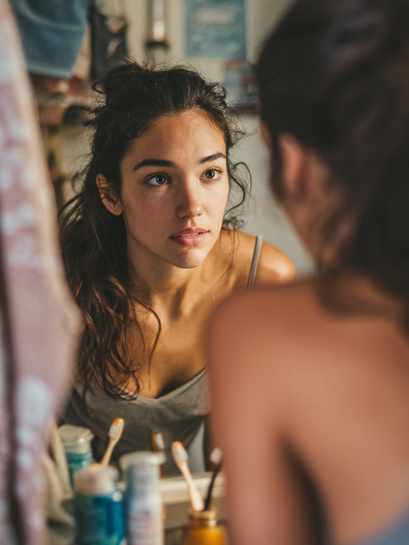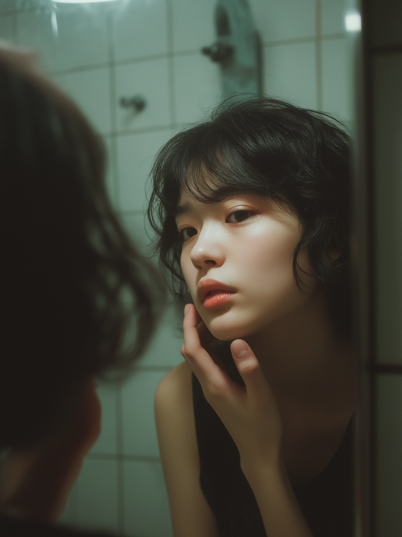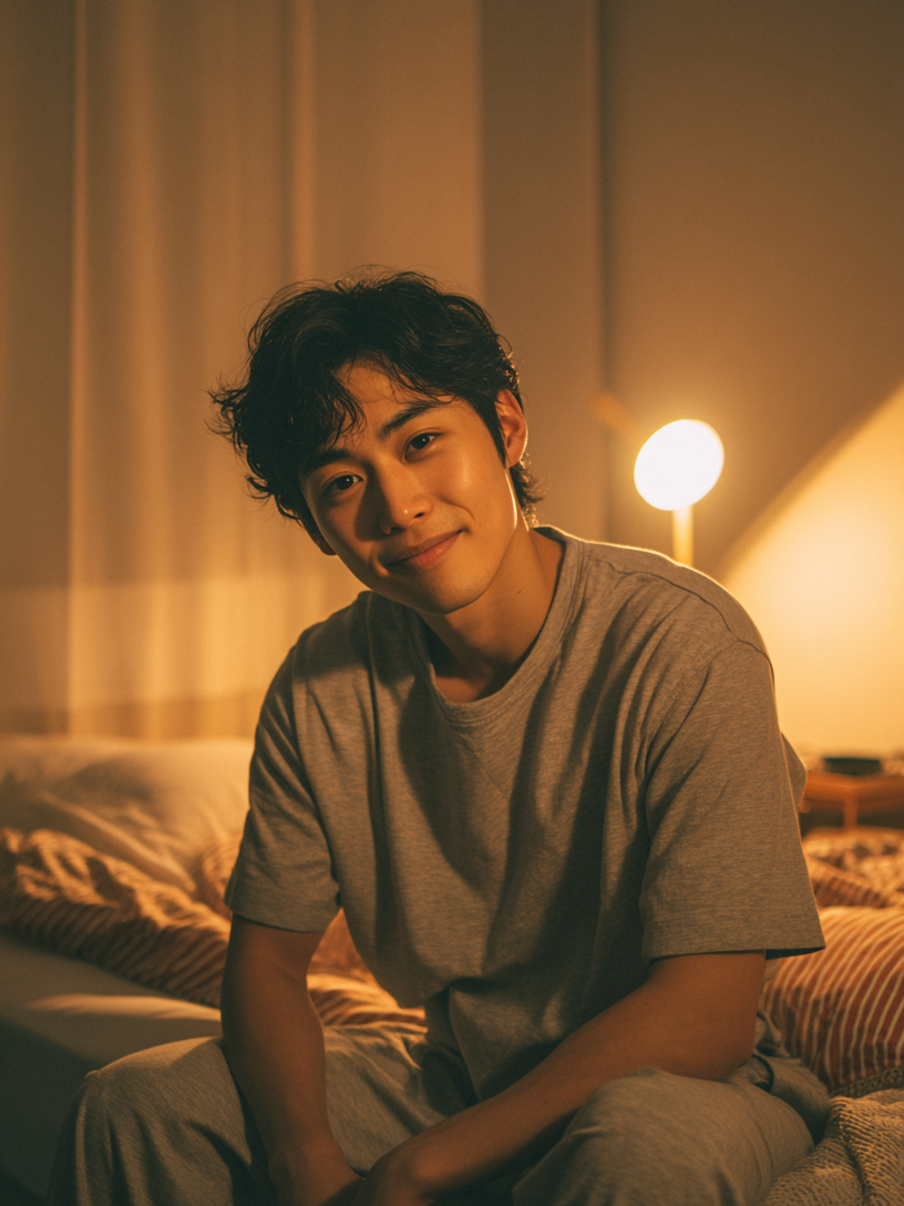 Use the person in the image. Keep the original face, features, expression, hairstyle, hair length, pose, gesture, lighting, and background exactly the same. Do not change the person’s gender or facial structure.