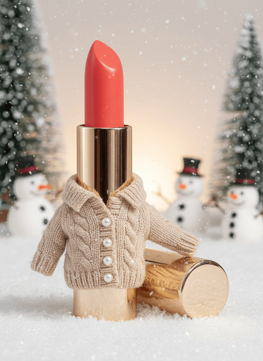 A cute snowman, wearing a red and grey knitted cap (with a plush ball), a red tassel scarf, grey plush gloves, and holding a purple gift box tied with a red ribbon; Standing in the midst of the thick snow, surrounded by Christmas ball ornaments and shining star strings, the background is a snow-covered Christmas tree and a hazy blue snow scene. The overall style is hyper-realistic and full of a dreamy feel. The warm light creates a cozy and healing Christmas atmosphere, highlighting the characteristics of winter fairy tale and holiday warmth. no text
