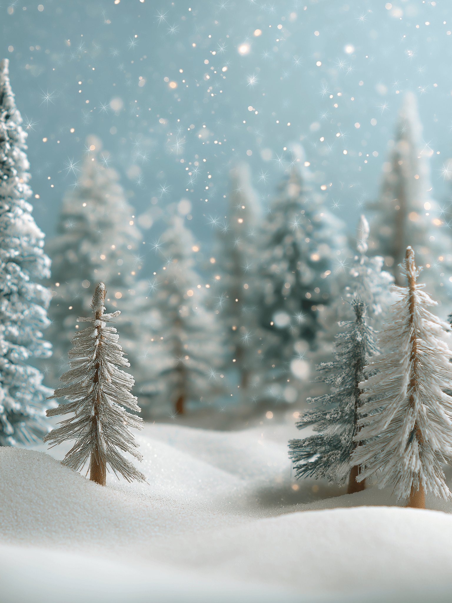 Refer to the style in the picture to create a miniature Christmas landscape: a felt-style snowman with a dreamy atmosphere